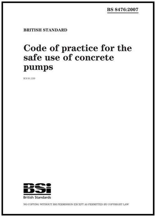 This is an extremely useful document and is the recommended reference for all those involved in pumping concrete on a regular basis. BS 8476:2007 may be purchased from the British Standards Institute shop.