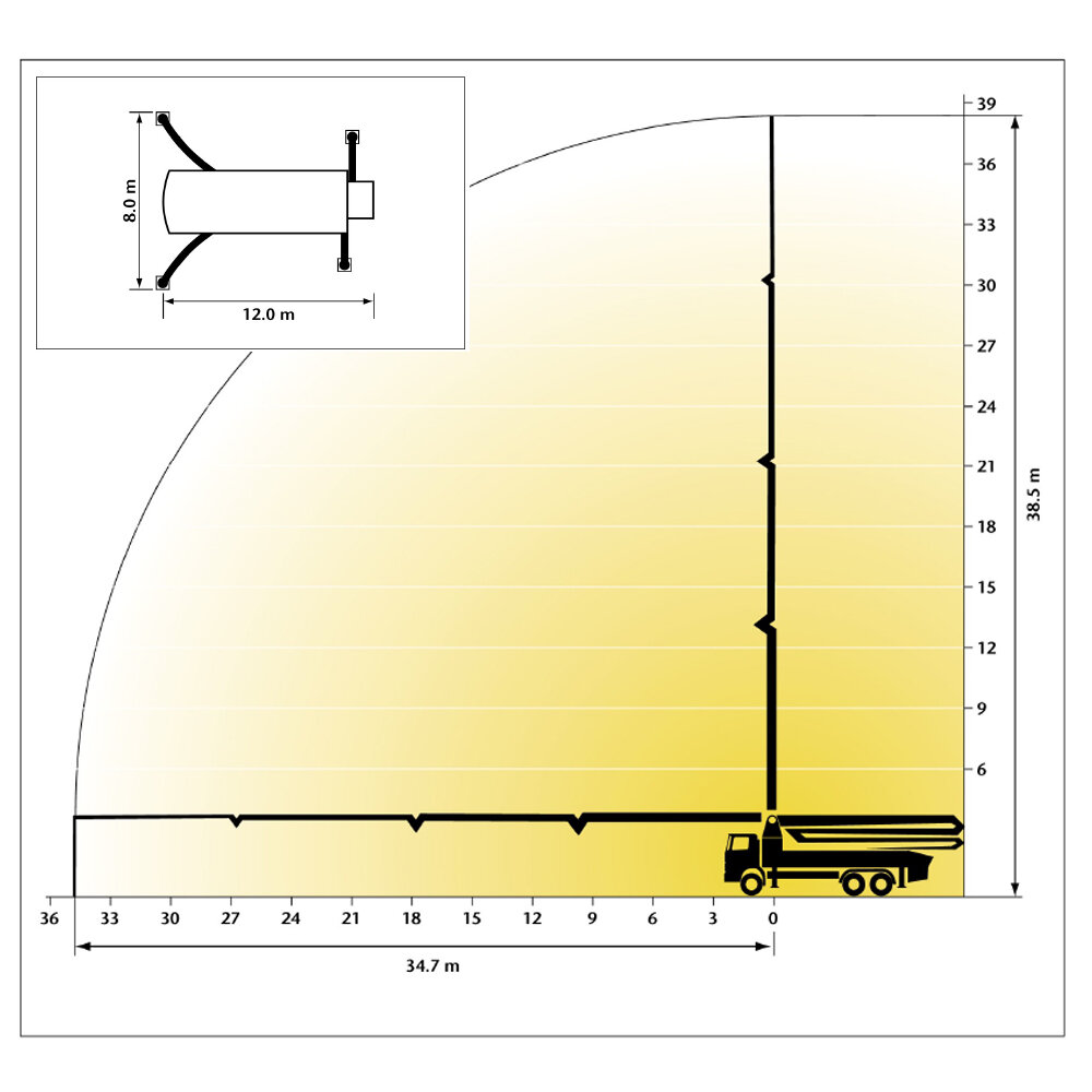 | Maximum gross horizontal reach | 34.7m |