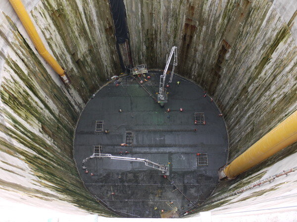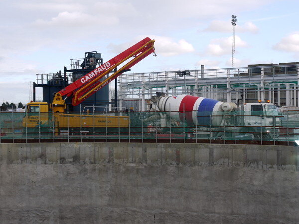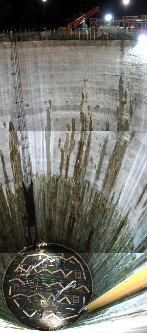 Each team had three operators at the bottom of the shaft to operate the booms and three pump operators at the surface. The pour lasted approximately 50 hours and in this time we placed 4,330 cubic metres of concrete into the slab. The requirement was to place the concrete at a minimum a rate of 80 cubic metres per hour. With excellent service from Cemex and a willing concrete placing gang we achieved an average of nearer 90 cubic metres per hour.
