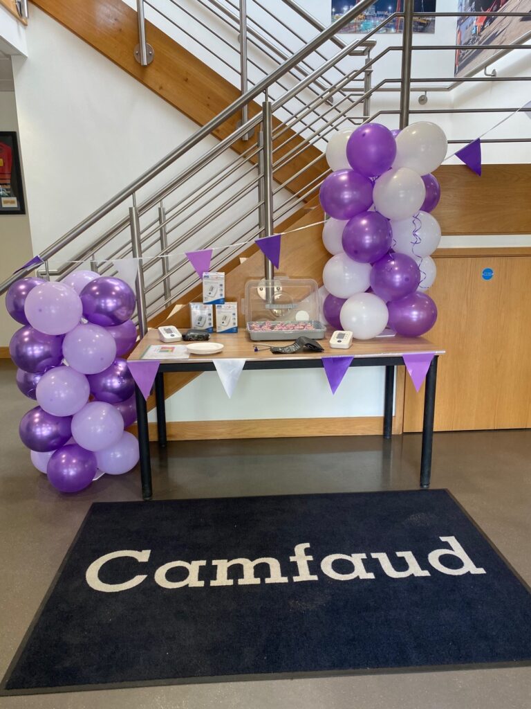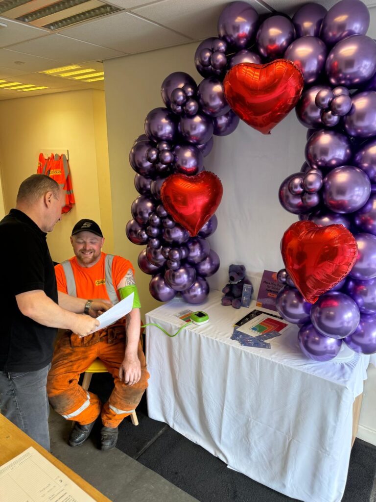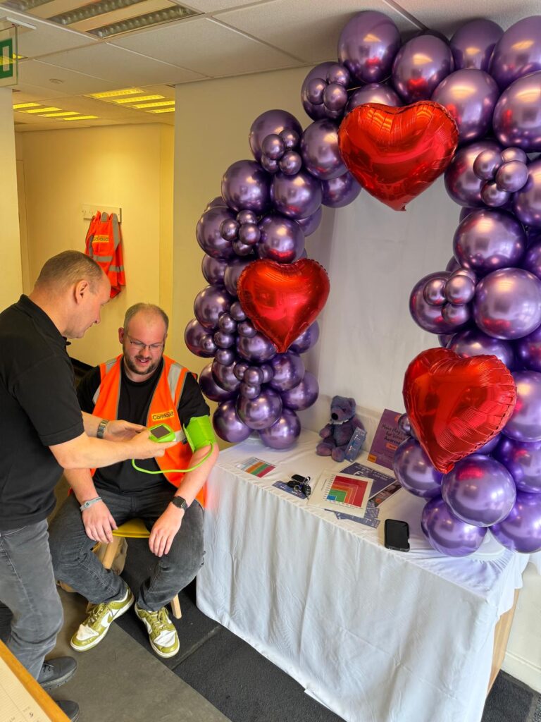 Some teams have decorated the stations with purple balloons, bunting, and information about testing your blood pressure, while others have baked treats, all to raise awareness.