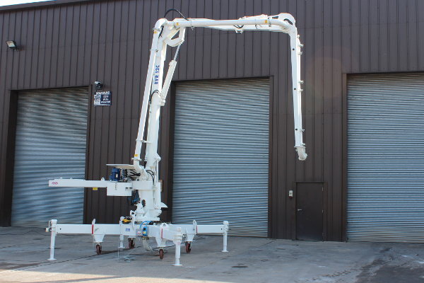 We have recently added a new stationary placing boom to our fleet. We now offer a small, hydraulically operated boom, the BVR12C. This boom has the same horizontal reach as our RV10 manual placer, i.e. 10 metres, but can move in the vertical plane, reaching up to 12 metres, as well as the horizontal plane.
